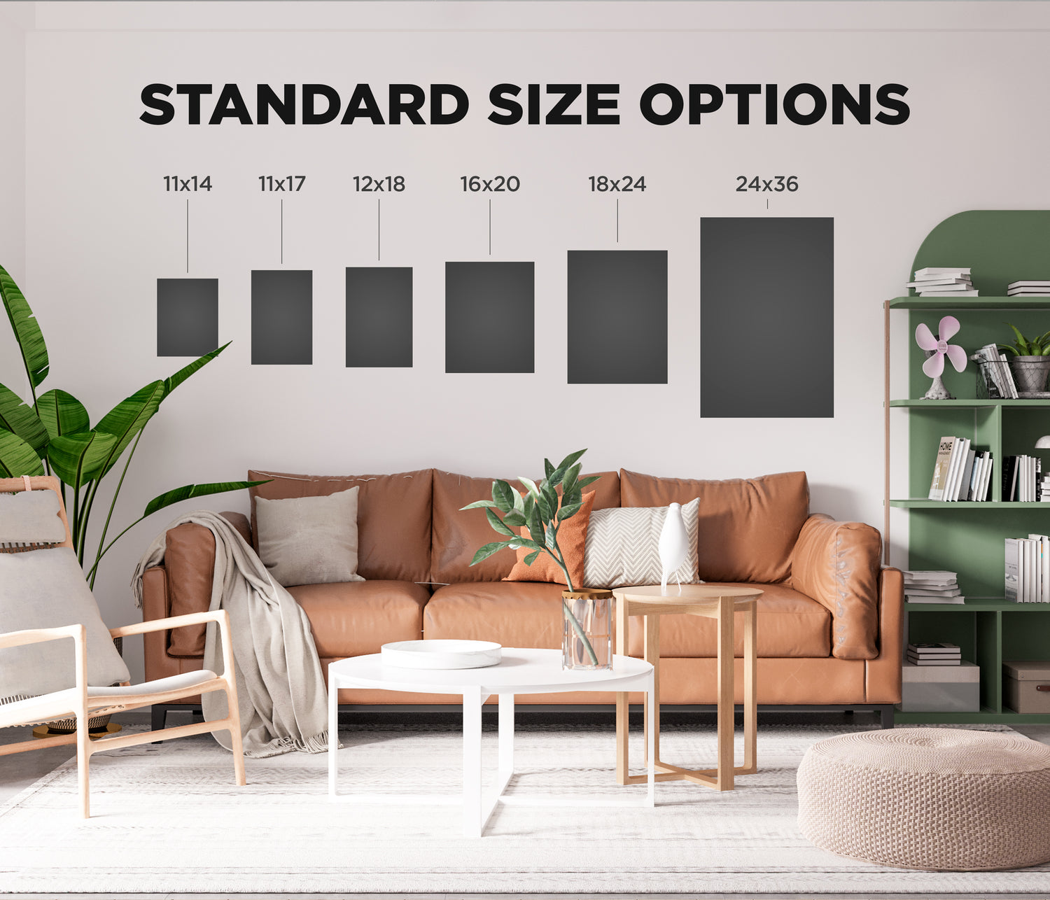 - Sizes: 11x14, 11x17, 12x18, 16x20, 18x24, 24x36, 32x48, 36x54 inches