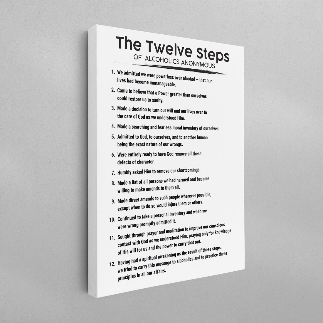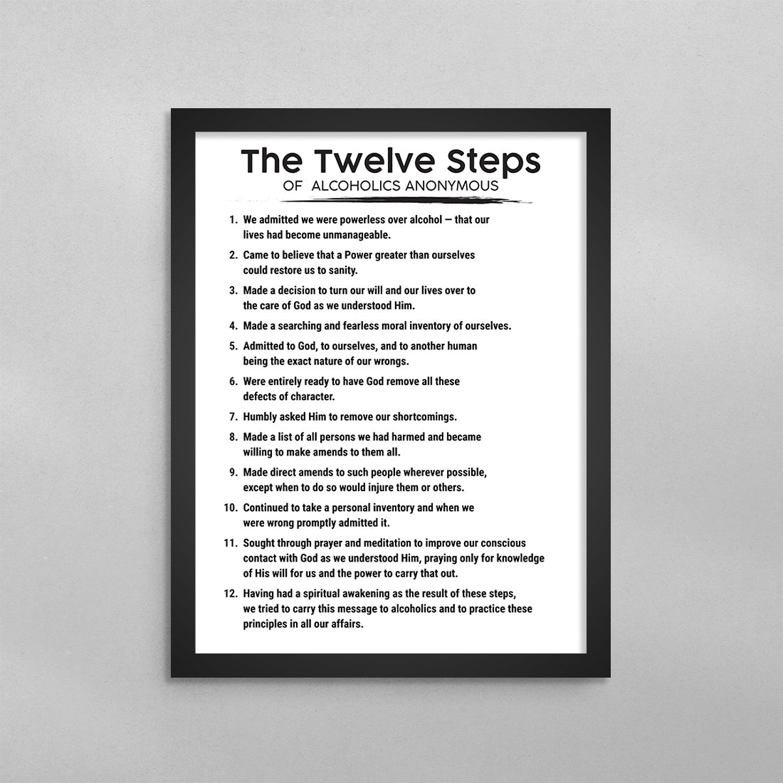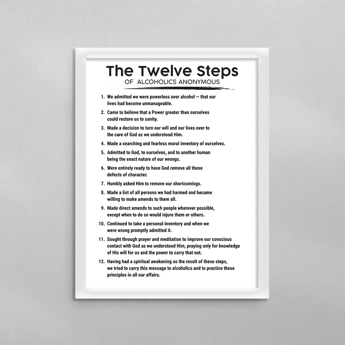 The 12 Steps of Alcoholics Anonymous AA Poster, addiction recovery therapy wall art for professionals perfect for your center, clinic, home or office. Shipped right to your door.