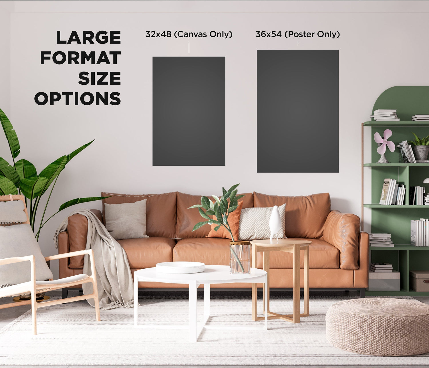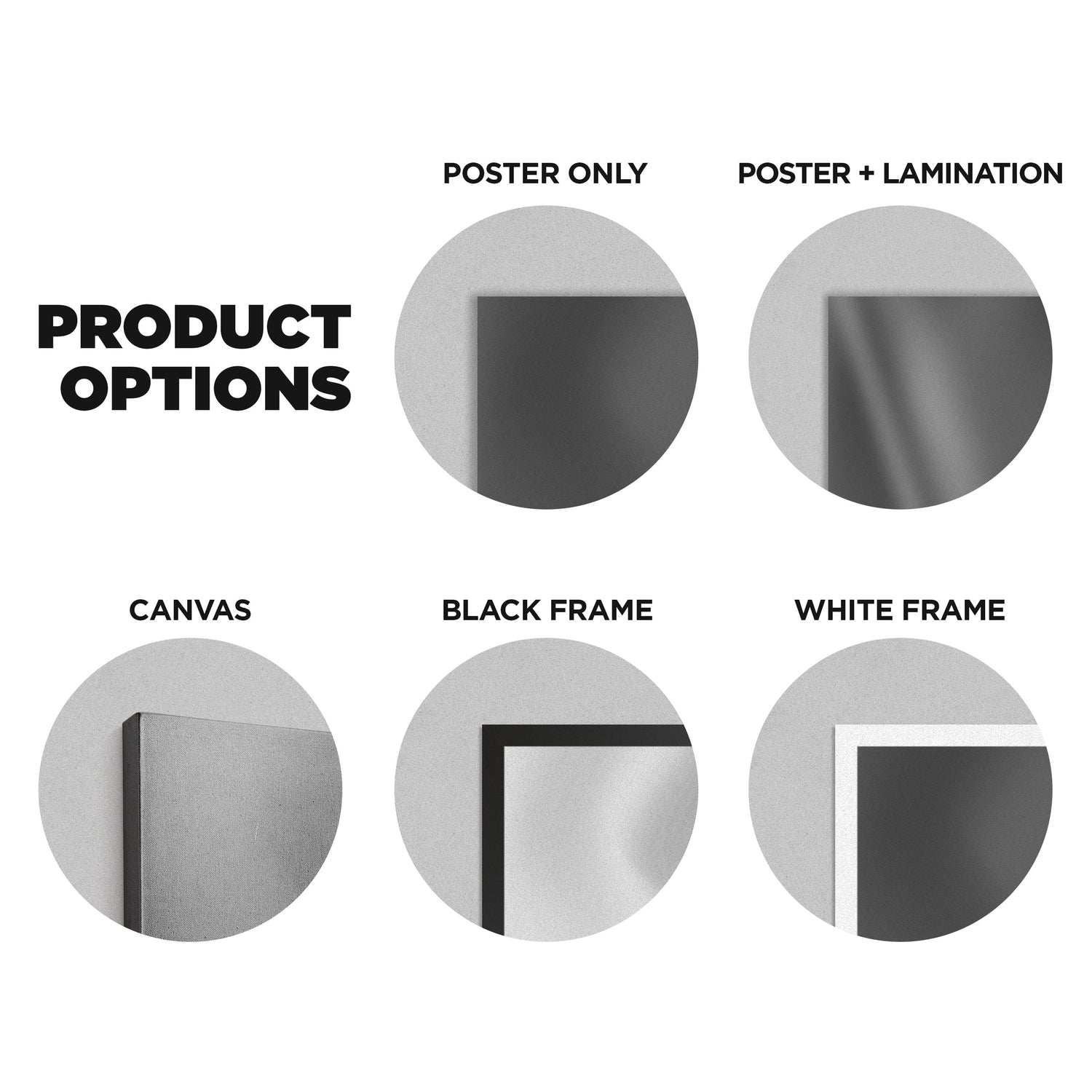 - Options: Poster Only, Poster + Lamination, Canvas, Black or White Frame